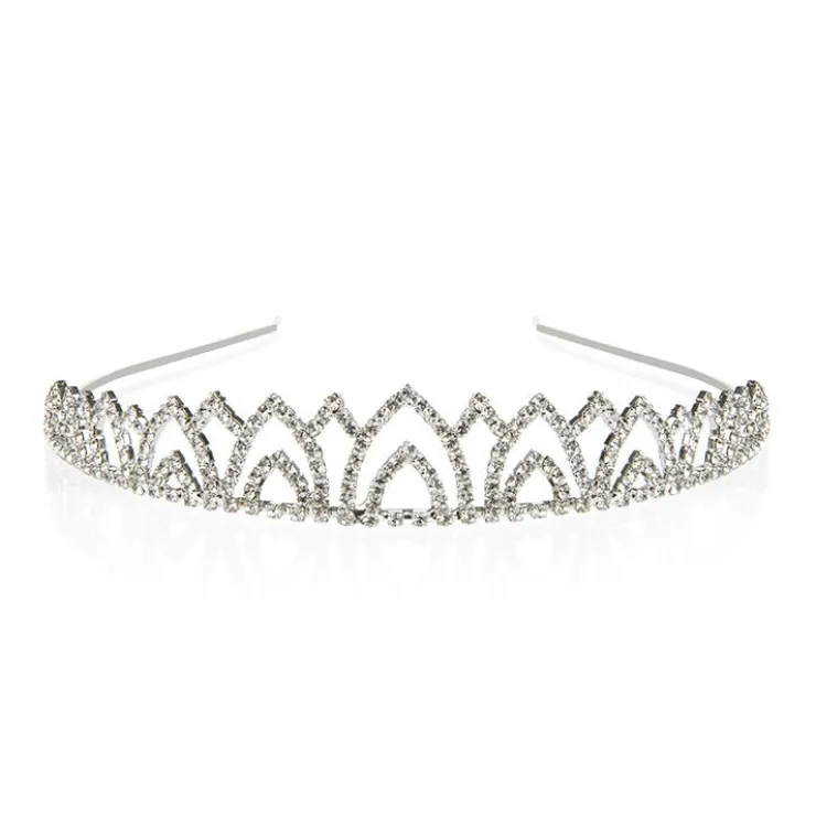 A Delicate Tiara With Arch Shape Details And Sparkling Crystals, Set Into A Base Metal Plated With White Gold.