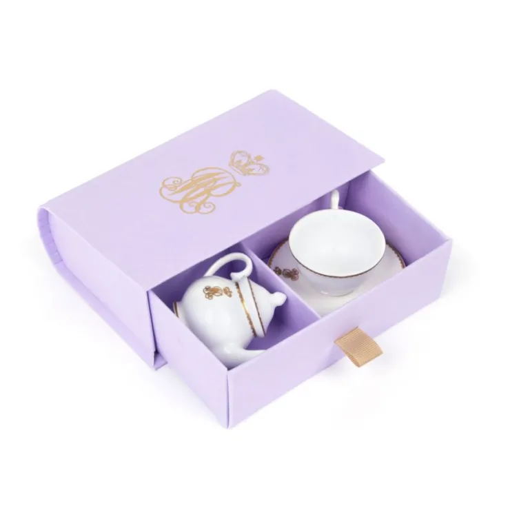 This Dainty Duo Replicates The Design Of A Dinner Service Found In Queen Mary’S Dolls’ House. These Miniature Teapot And Teacup And Saucer Are Made In English Fine Bone China. Presented In A Lilac Book-Shaped Box And Features Queen Mary’S Cypher On The Top.