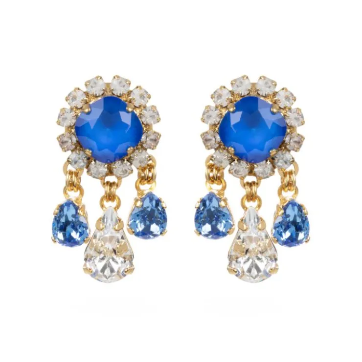Inspired By The Timeless Pieces Worn By Her Majesty The Queen. Make A Statement With Striking Blue, Hand-Painted Crystals With A Clear Tear Drop Crystal.