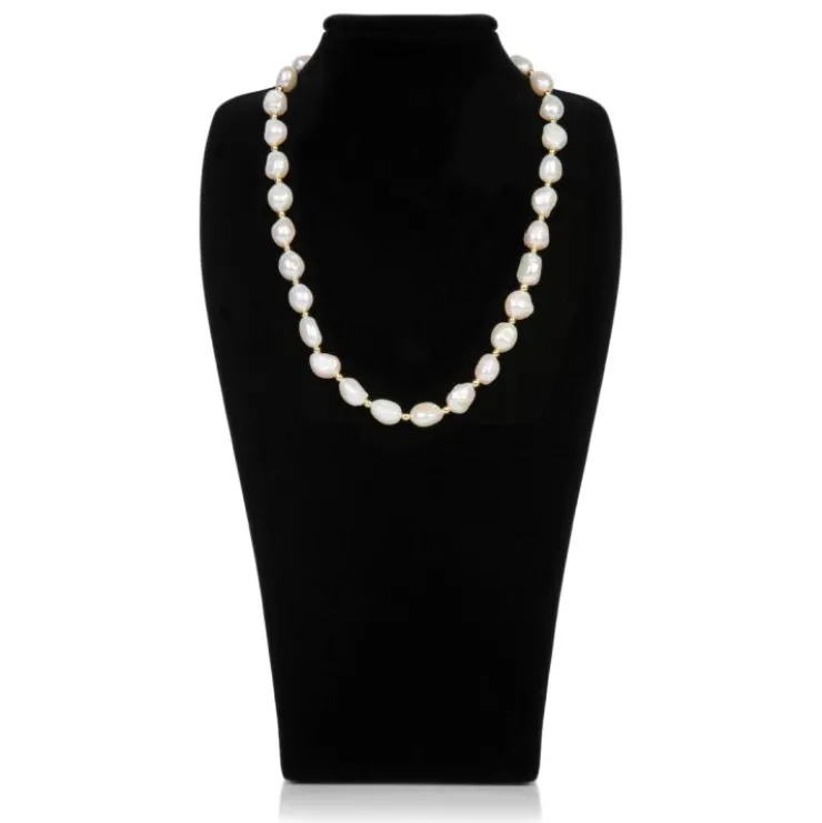 A Feminine And Elegant Necklace Of 10-11Mm Baroque Pearls Interspersed With Small Round Gold Plated Hematite Beads, On A Gold Plated Magnetic Ball Clasp.