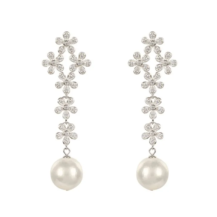 These Elegant Earrings Have Intricate Crystal, Floral Detail And Are Beautifully Finished With A Freshwater Pearl Drop.